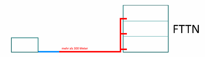 Fiber to the Node oder Fiber to the Neighbourhood: Die Glasfaser endet in einem Schaltschrank, der bis zu einigen Kilometern vom Kundenstandort entfernt sein kann. Die Verkabelung vom Schaltschrank in der Straße bis zum Kunden erfolgt in der Regel über Kupfer.