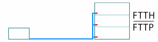 Fiber to the Premises: Wird verwendet, um sowohl FTTH- als auch FTTB-Installationen zu beschreiben. Es wird manchmal auch verwendet, um anzuzeigen, dass ein bestimmtes Glasfasernetz sowohl Haushalte als auch Unternehmen umfasst.