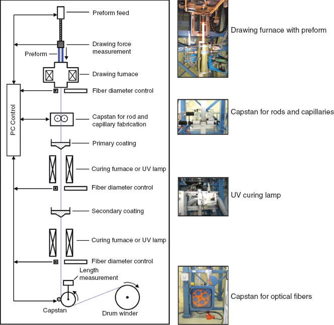 Der Vorläufer wird in den Faserziehturm eingelegt, um die Faser zu ziehen. Der Vorläufer wird zu einer optischen Faser mit einer Dicke von 125 μm gezogen und mit zwei Schichten Harz beschichtet, um die Festigkeit der Faser zu schützen.